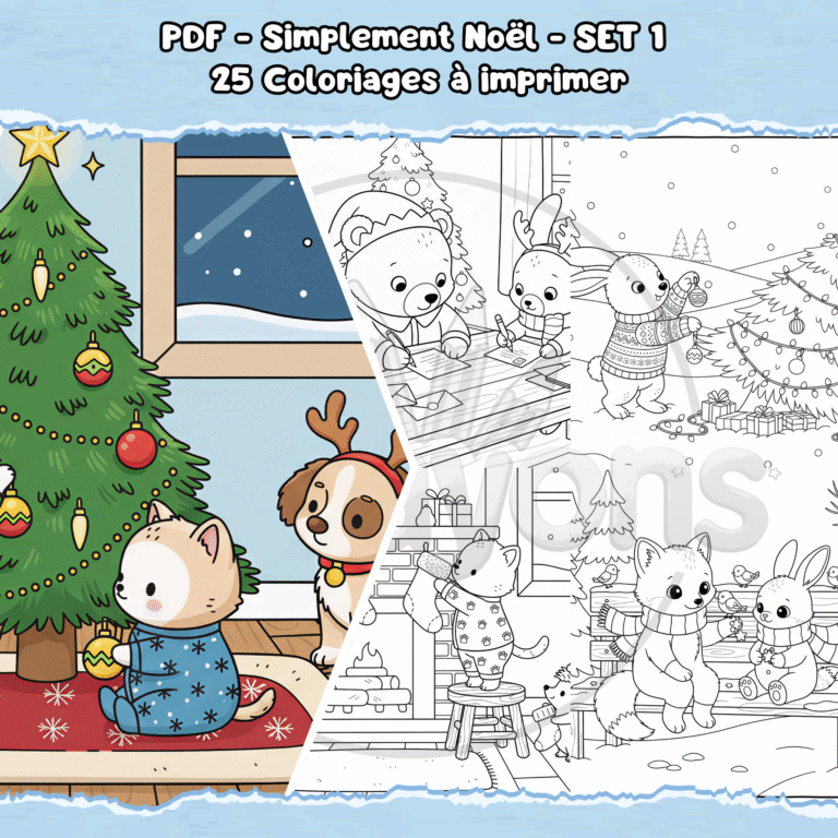 Laisse ta créativité briller et transforme chaque illustration en une scène de Noël unique et pleine d’émotions. 🌟