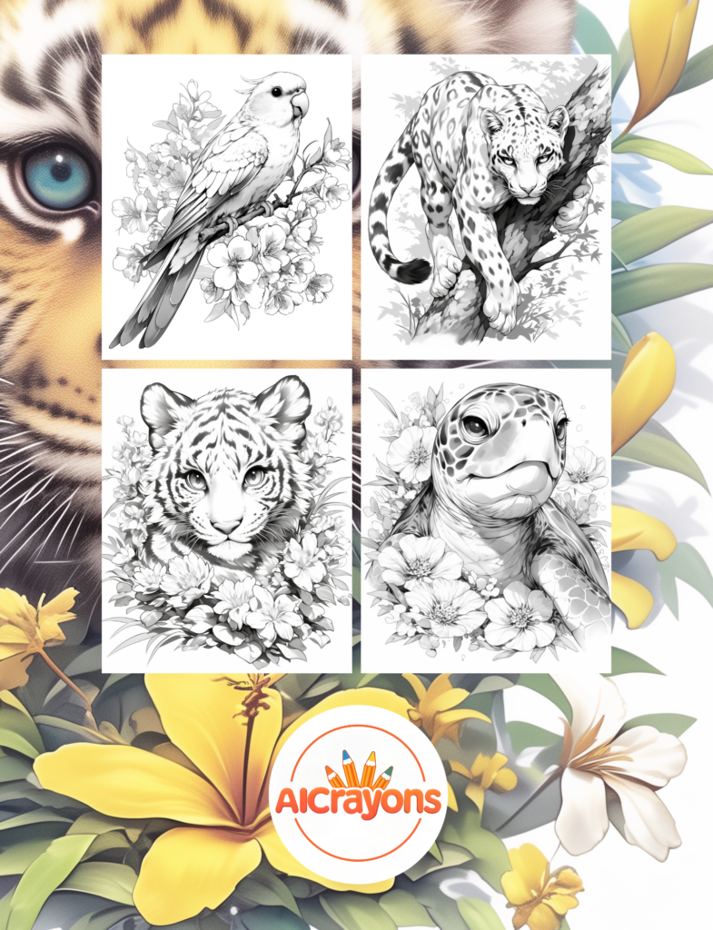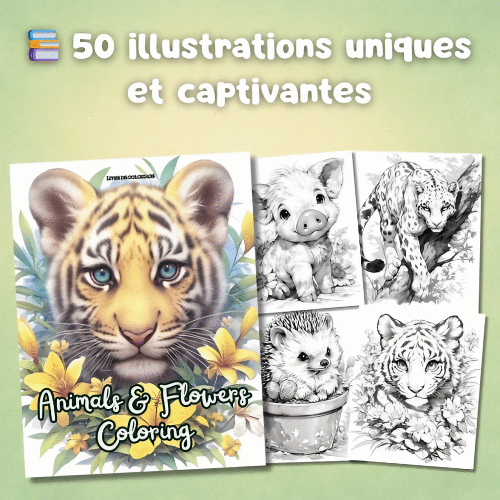 - Animals & Flowers Coloring : Immergez-vous dans la tendresse des animaux et la splendeur des fleurs à travers des dessins élégants et détaillés.